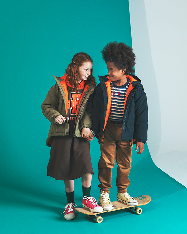 『それは、ささやかな大冒険のはじまり』をコンセプトに、元気に動いても大丈夫な「機能性」とお子様の感性を引き出す「ポップなデザイン」の商品を提案します。