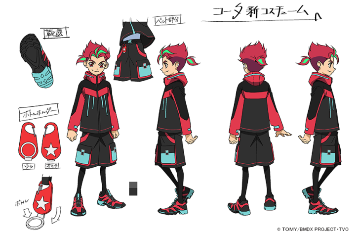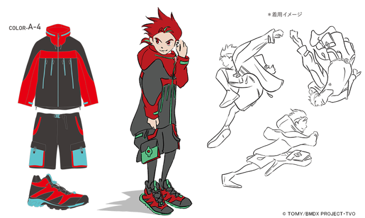 コスチュームデザインはリアリティを重視し、まさに主人公・甲賀コータが、実際にビームスのショップに訪れてアイテムを選んだようなテイストのファッションをイメージ。アウトドアファッションをベースにスポーティーさを加え、『キャップ革命 ボトルマンDX』の世界観を表現しています。 カラーパターンは、コータのイメージカラーの“ブラックとレッド”を中心に、ボトルマンとの相性を考えてデザインしました。