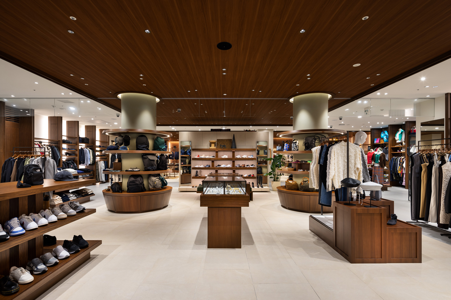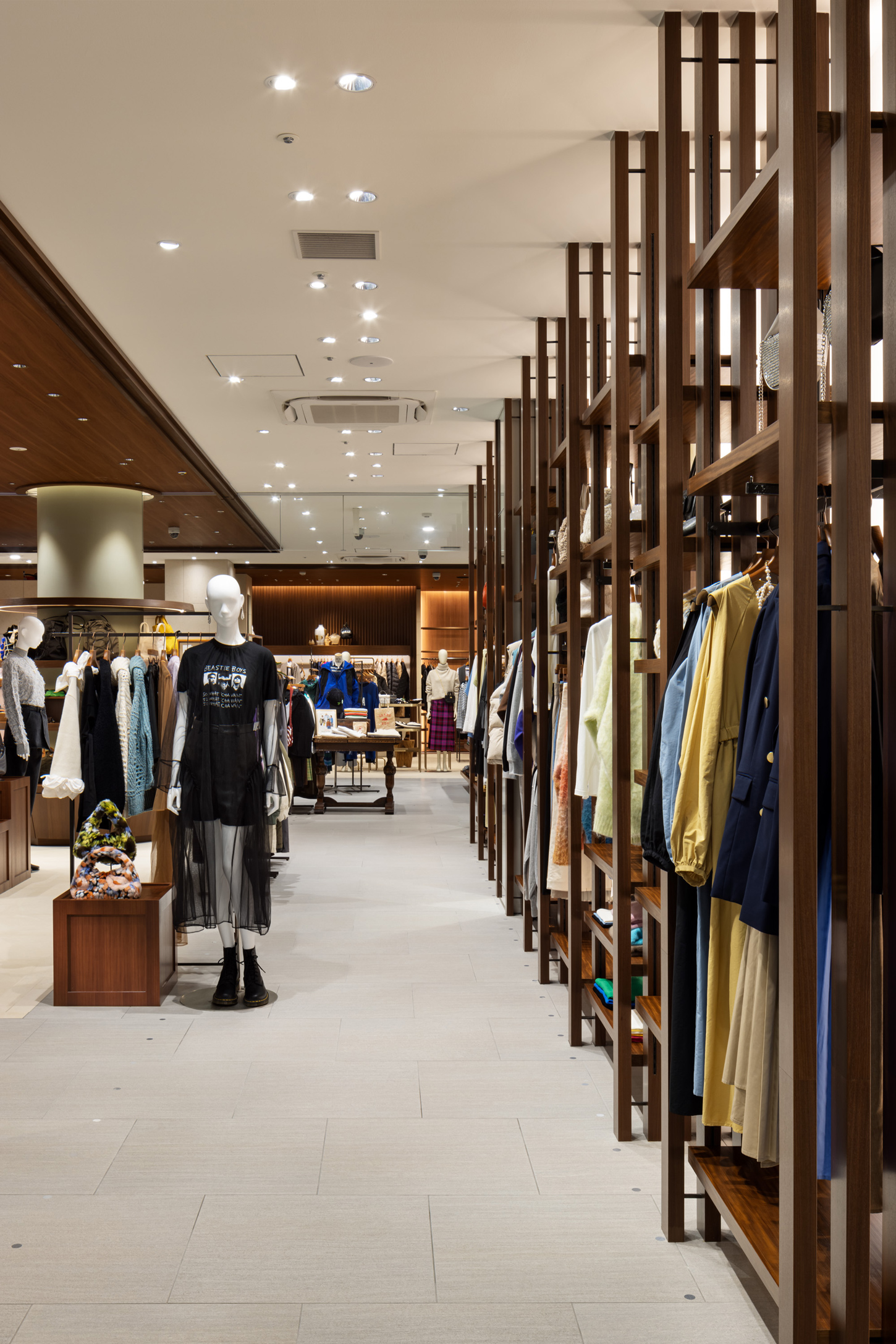 カジュアルからドレス、ビジネスウエア、雑貨までの多彩な9レーベルをご覧いただけるほか、期間限定イベントやポップアップショップ、ビームスの手がけるBtoB(企業間取引)によるコラボレーションの展示・発表などを行える仕様とした。