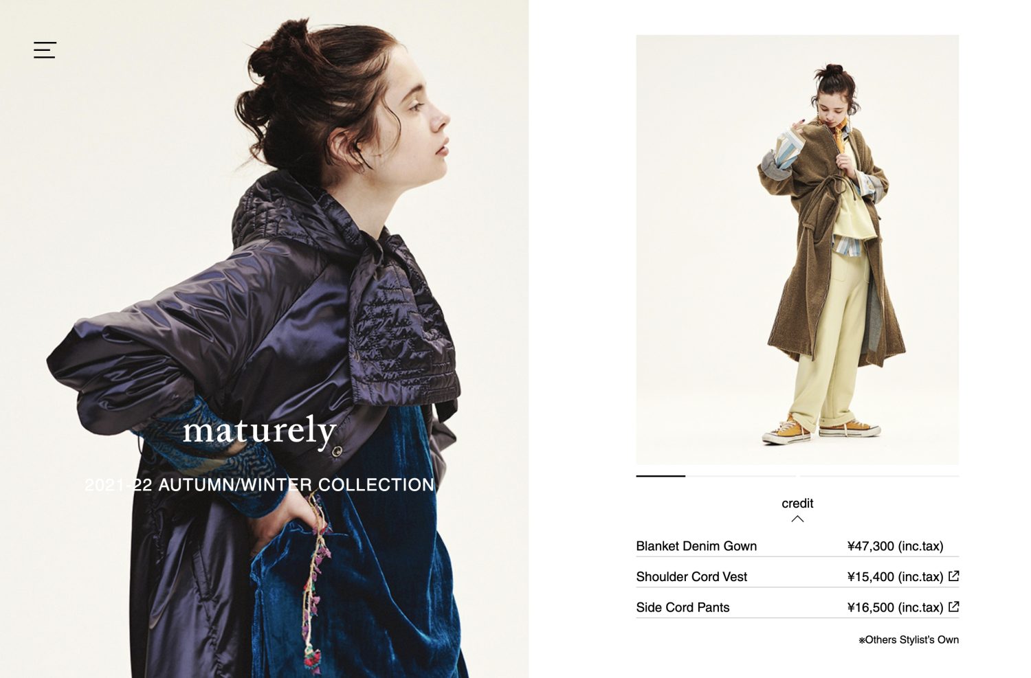 スタイルをもった恰好よくもチャーミングな女性のためのブランド<maturely>シーズンルックの制作におけるコーディネートとWEBサイトのディレクション。